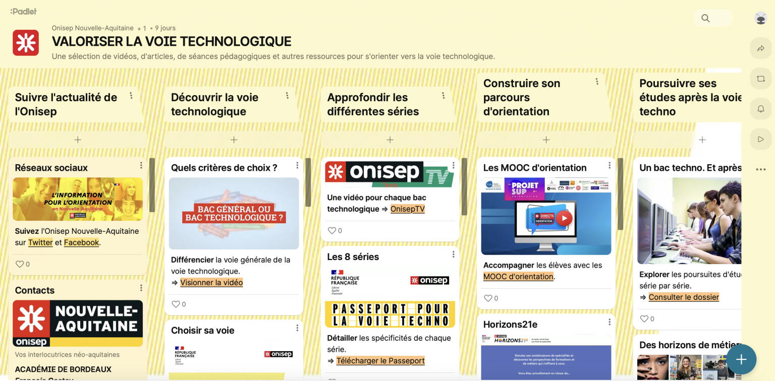 La voie technologique propose des possibilités de formation intéressantes. Pour autant, elle est parfois mal connue des jeunes. Le padlet « Valoriser la voie technologique » propose une sélection de vidéos, d’articles, de séances pédagogiques et autres ressources pour les accompagner à la découverte de cette voie et de ses opportunités.Ce padlet est mis à jour régulièrement.
